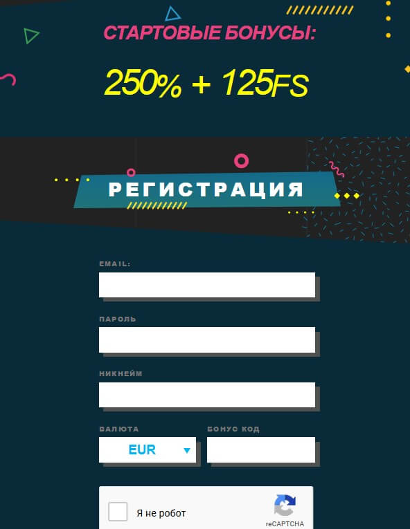 | Вход с помощью e-mail | 20 Free Spins на бонусный счет |